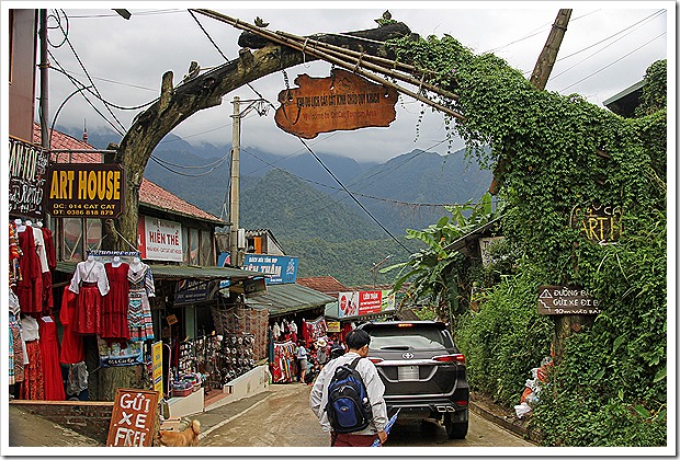 サパ市内から最も近いところにある黒モン族の村です。私たちは専用車で行きましたがサパ中心部から歩いていくことも可能です。市内からだと約2.5キロ、徒歩35分です。カットカット村は、山の谷間にあるのでサパ中心部からは坂を下っていく感じになります。標高差は220mぐらいあります。
