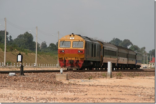 テクテク来た歩道を戻って、入口の係のお兄さんにタナレーン駅の場所を確認していたら、予期せず、試運転の列車が友好橋を通過です。見れてラッキーと思ったの同時に、あと数分早かったら、橋の上で写真を撮れていたのにと思うとちょっと悔しいです。もっとも本当に予想外の出来事でした。