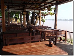 時計は午後1時20分、さすがにお腹も空いてきた。そこで、空港近くにある今年8月にオープンしたリバーサイドレストラン Kong Viewで昼食をとることに。着いたら、すでに午後2時。お洒落なレストランなので、値段は、通常の1.5?2倍といった感じ。涼しくなる夜が人気で、地元とお金持ちのラオス人や在住外国人で賑わうお店。ビール(12,000KIP)と海鮮チャーハン(26,000KIP,約325円)、それと美味しそうだったので、蜂蜜漬け豚肉焼き(Grilled Pork with Honey, 26,000KIP,約325円)を注文。海鮮チャーハンも蜂蜜漬け豚肉焼きも美味しかったですねぇ。高いだけはあります。